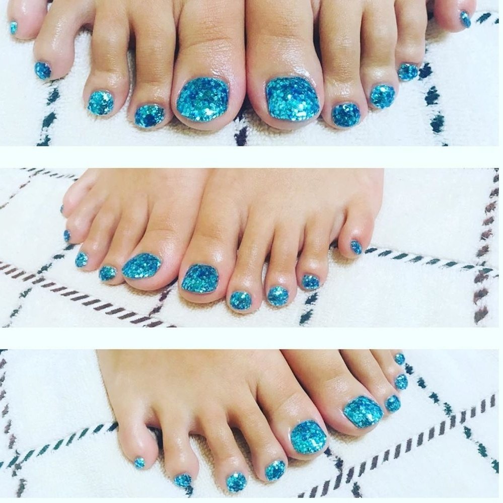 水色のキラキラフットネイル 18 06 10 完全予約制のプライベートネイルサロン 彩琶 Iroha ぐるっと富士宮